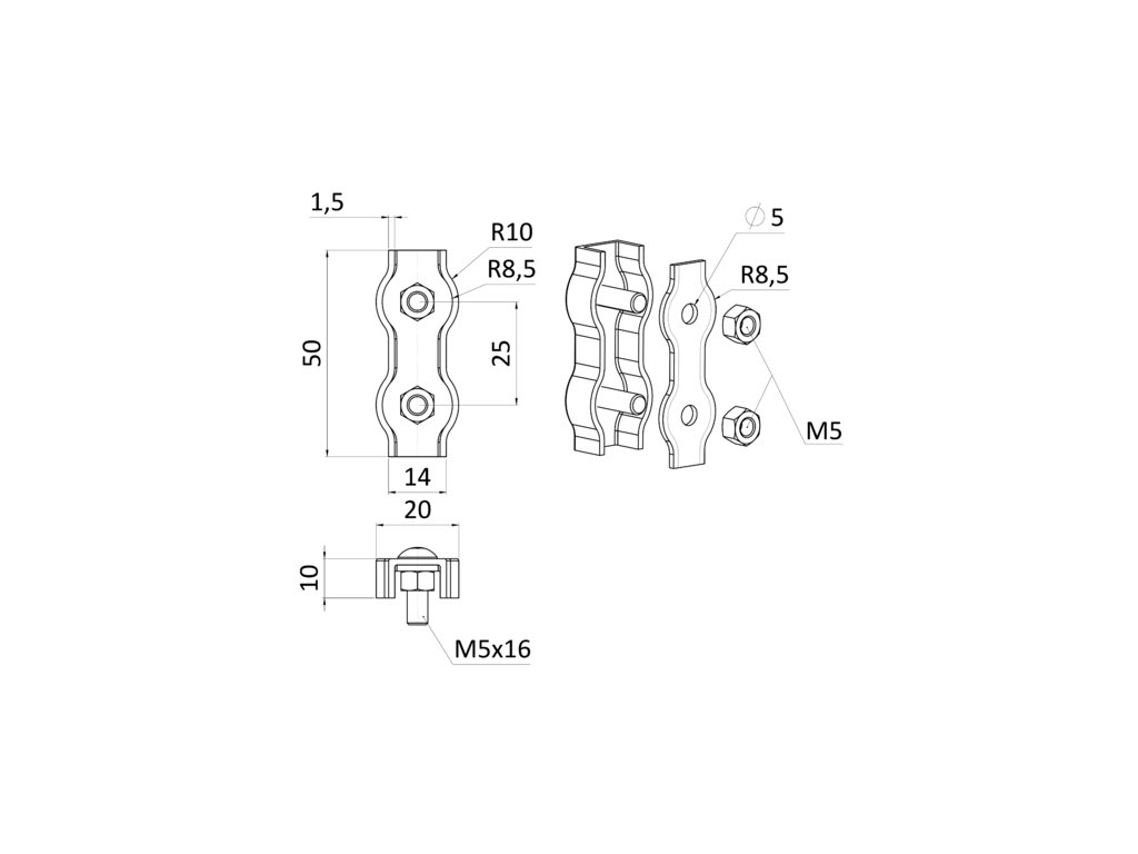 Oblouková svorka pro nerezový drát ø 5 mm, dvojitá