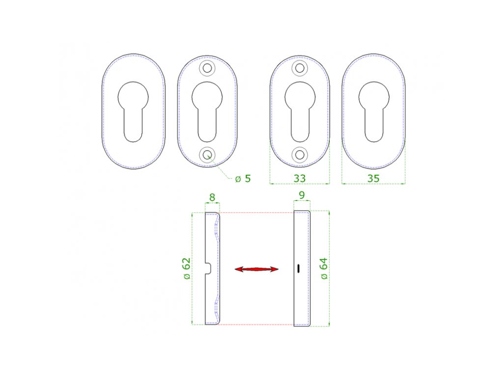 Nerezová oválná rozeta pro cylindrickou vložku je určena pro dveře nebo vrata. Vyrobeno z broušené nerezové oceli AISI304, typ broušení K320. V balení jsou 2ks, které jsou namontovány proti sobě z každé strany.
