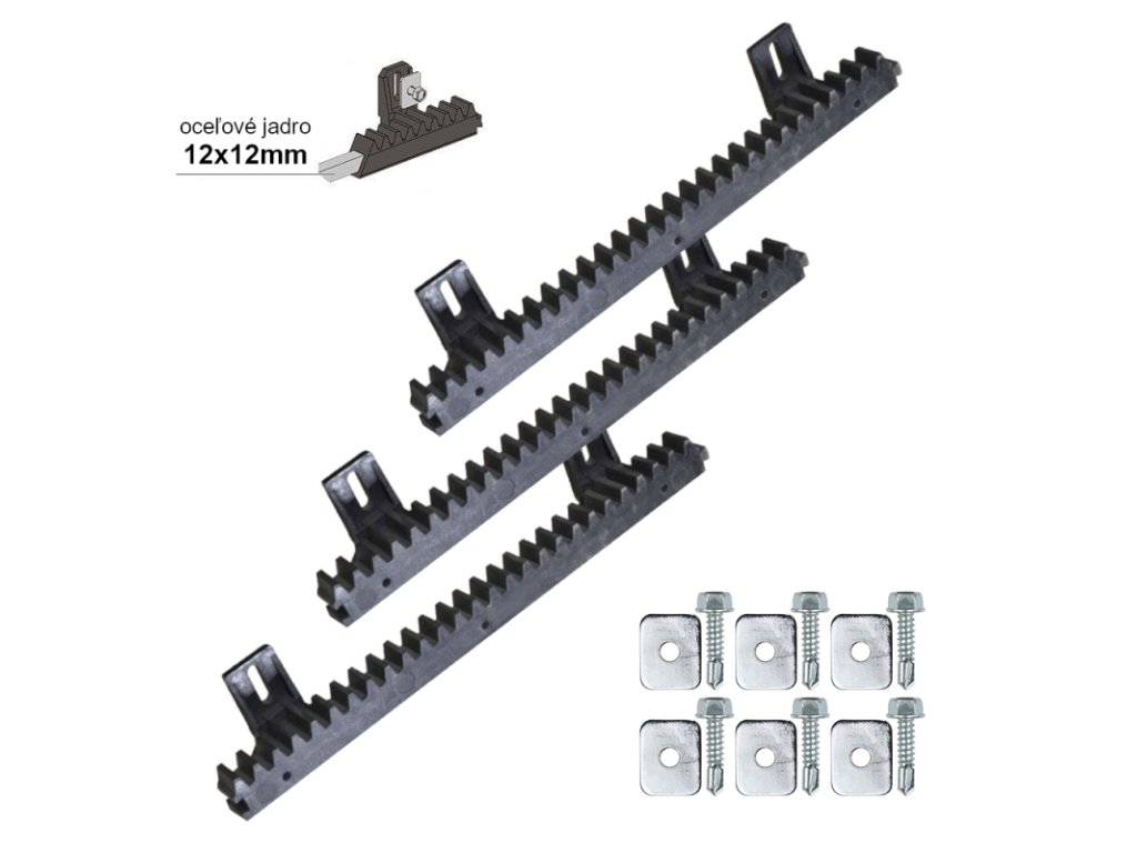 Budete potřebovat délku ozubeného hřebene přibližně 3,50 m (Z naší zkušenosti si raději objednejte 4,00 m, ať Vám nechybí).