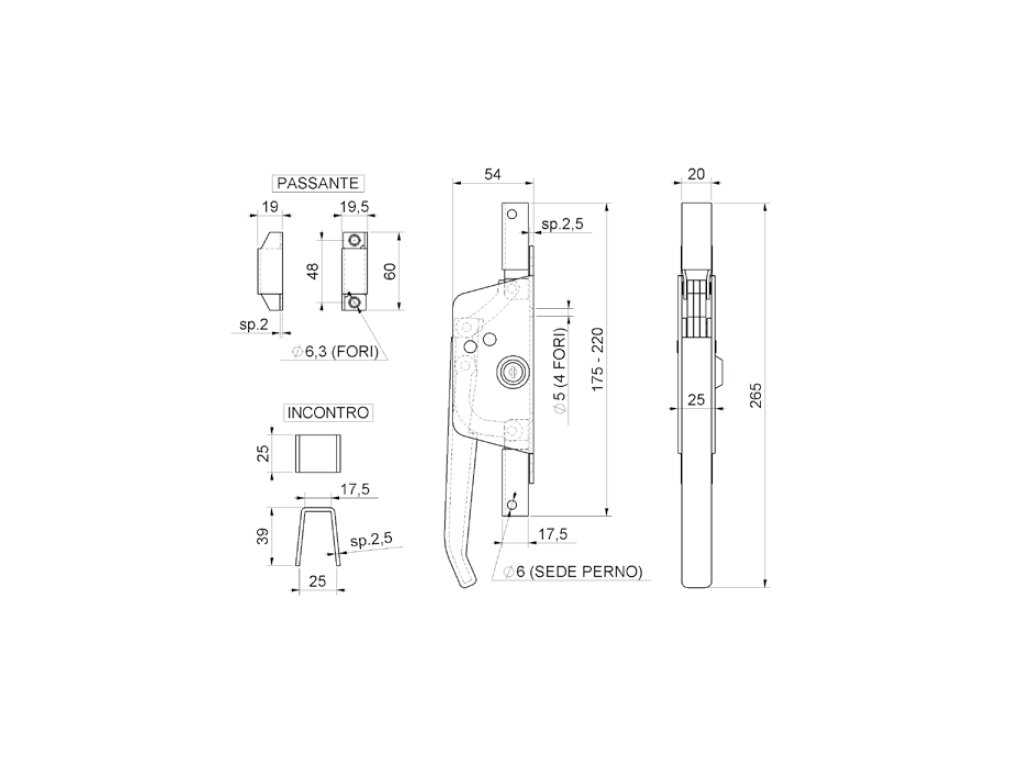 Pákový zámek pro tyč 14x14 mm, dvoubodový, uzamykatelný, pozinkovaný