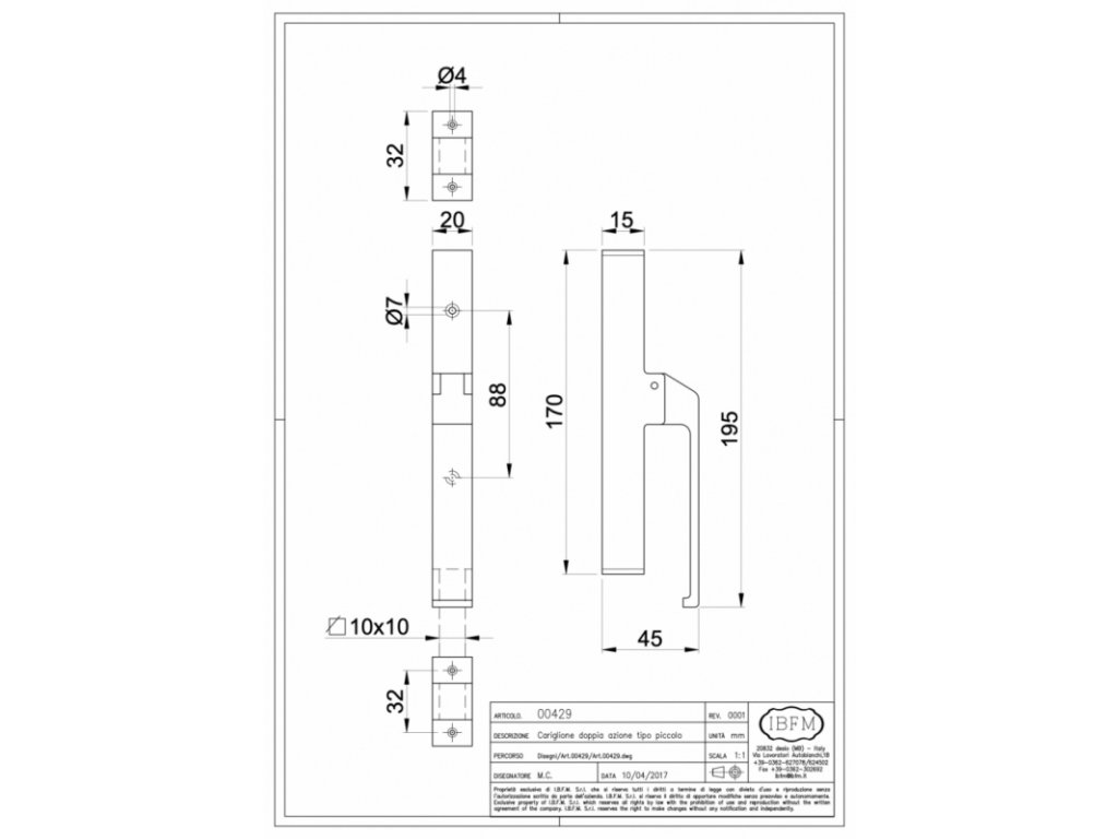 Pákový zavírač pro tyč 10x10mm, dvoubodový, bez zámku, ocel