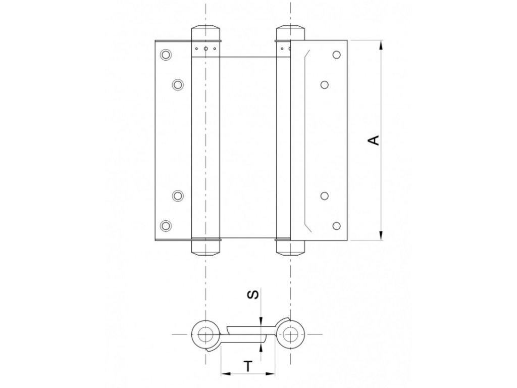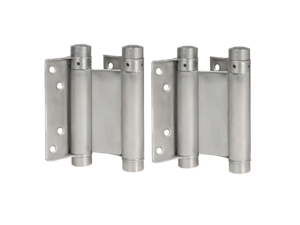 Oboustranný pružinový závěs vhodný pro vrata nebo dveře, které se otevírají směrem ven i dovnitř. Závěsy jsou ocelové s povrchová úprava zinkem.