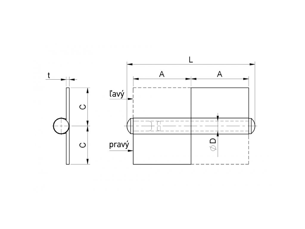 Pro svařování. Bronzová podložka + pevný kolík. Vpravo/vlevo. Různé rozměry.