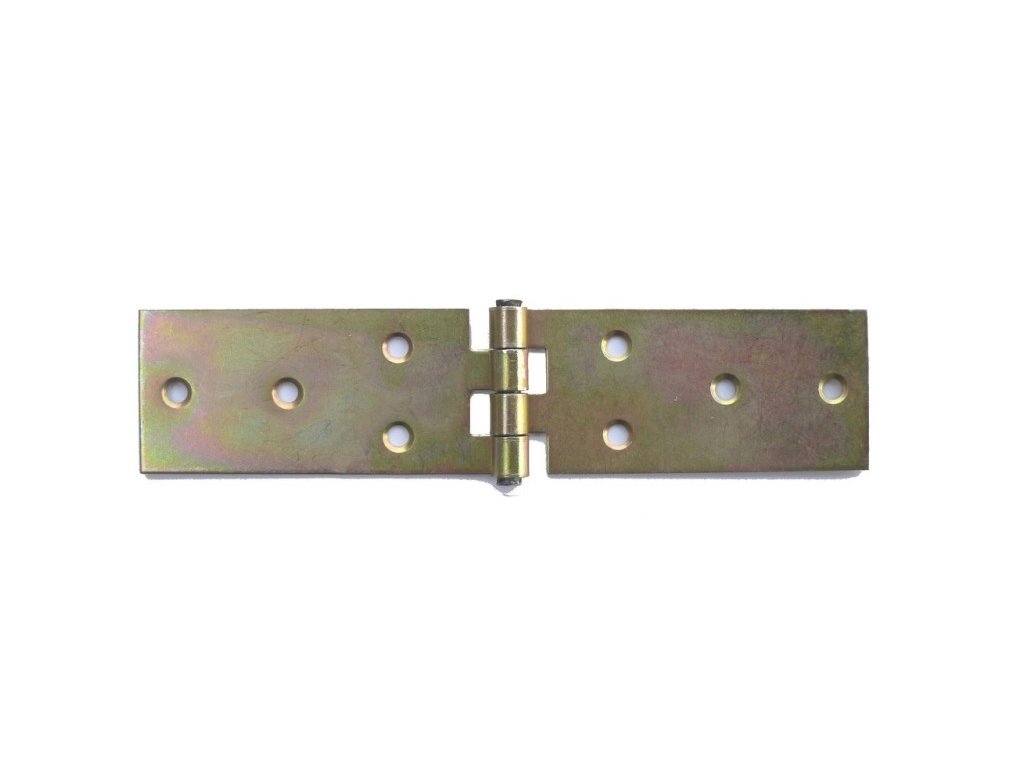 Pásový závěs, pant o rozměrech 150x35 mm a tloušťce 2 mm. Vyrobeno z oceli s povrchovou úpravou žlutým zinkem.