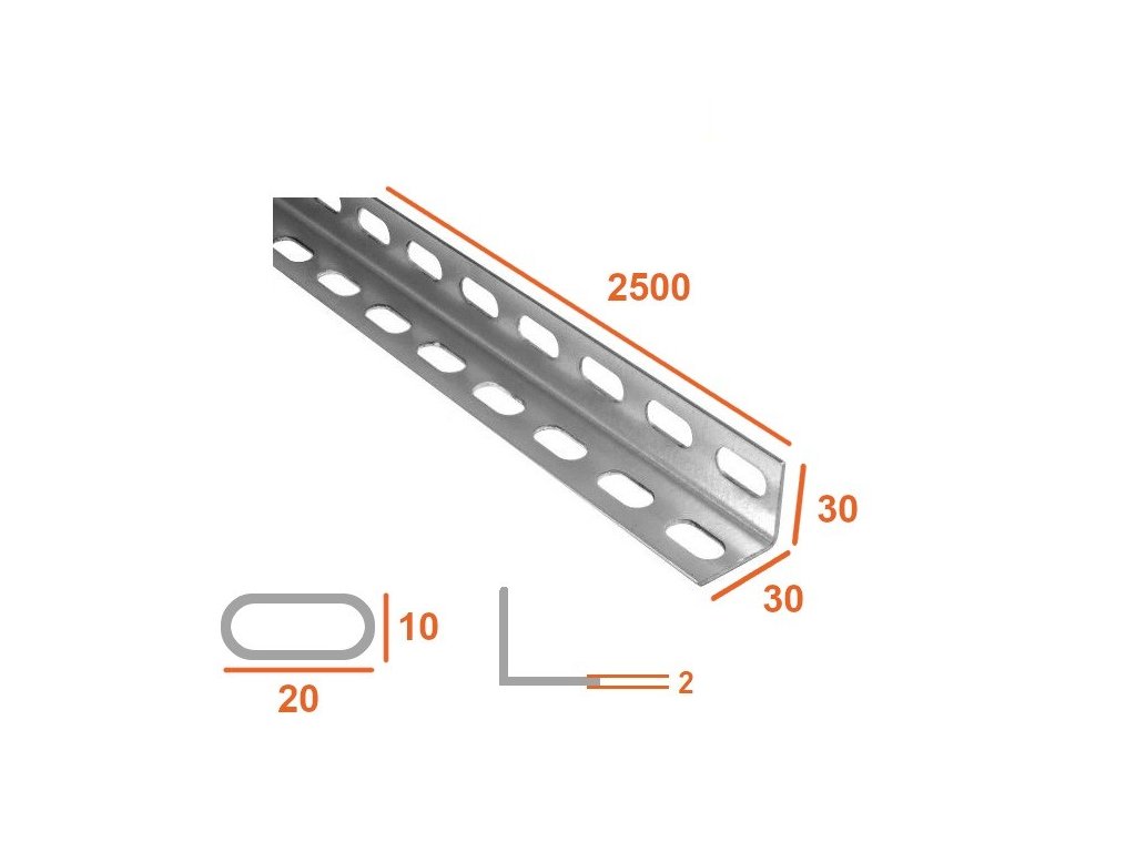 Perforovaný úhelník L 30x30x2mm, délka 2,5m, otvory 20x10mm, pozinkovaný, pro vodicí lištu pohonu