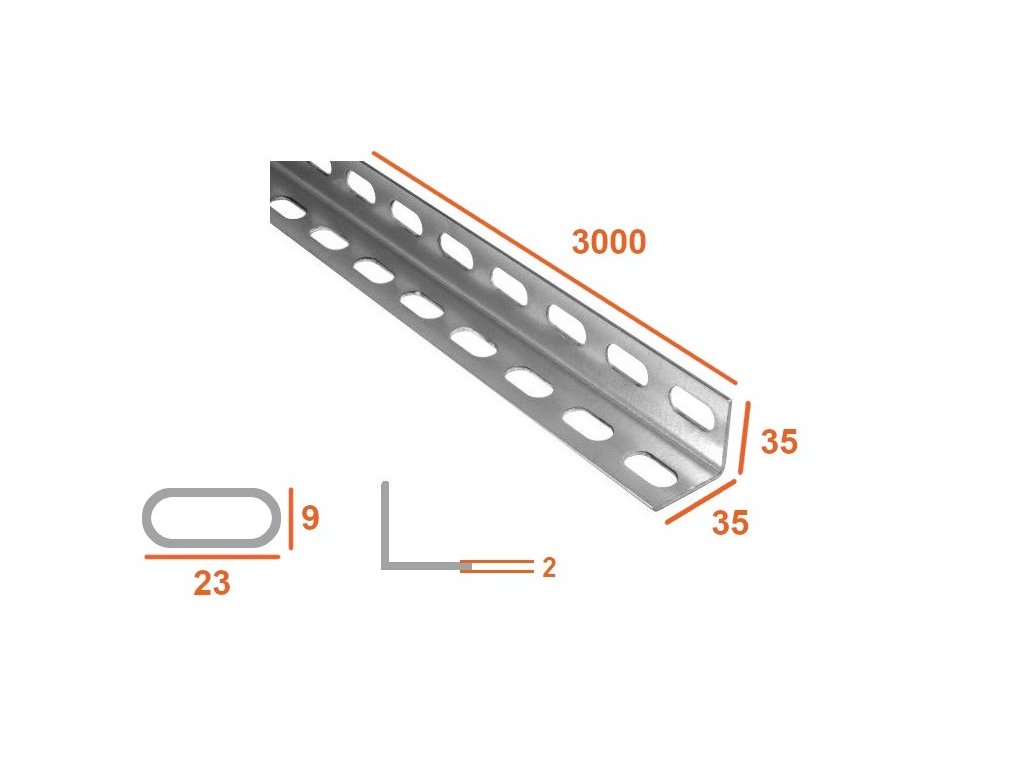 Perforovaný úhelník L 35x35x2mm, délka 3m, otvory 23x9mm, pozinkovaný, pro vodicí lištu pohonu