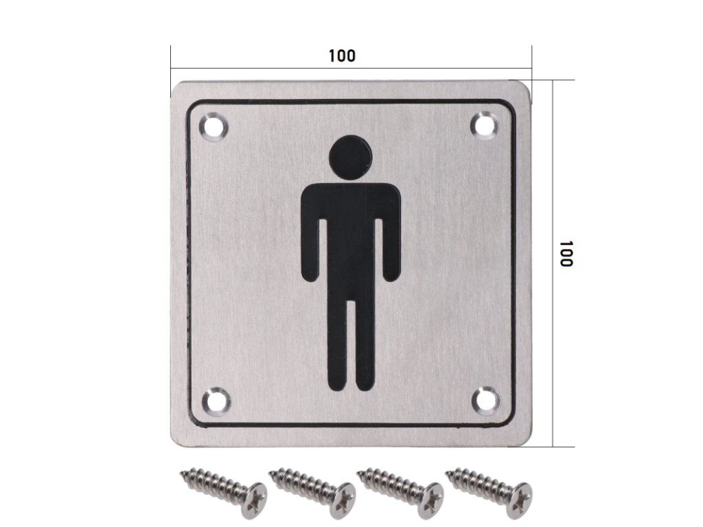 Rozměry desky pro označení dveří toalety jsou 100x100 mm o tloušťce 1,2 mm.