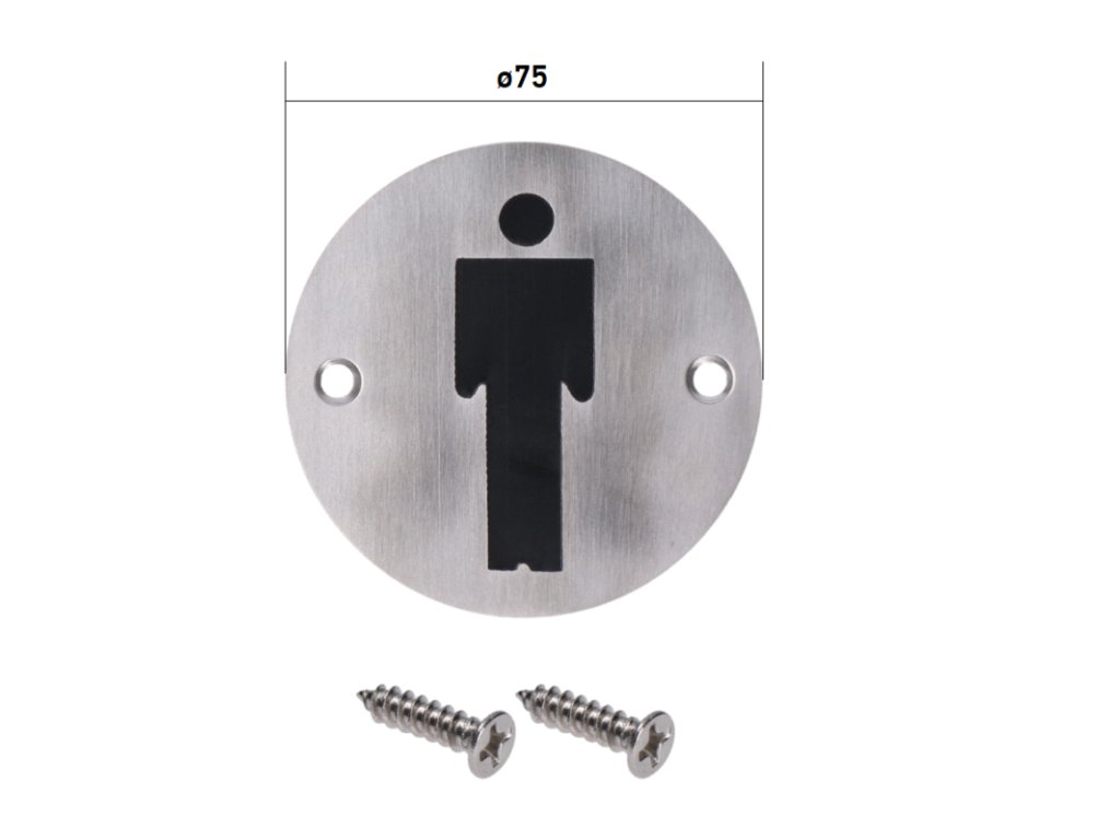 Průměr desky pro označení dveří toalety je 75 mm a tloušťka 1,2 mm.