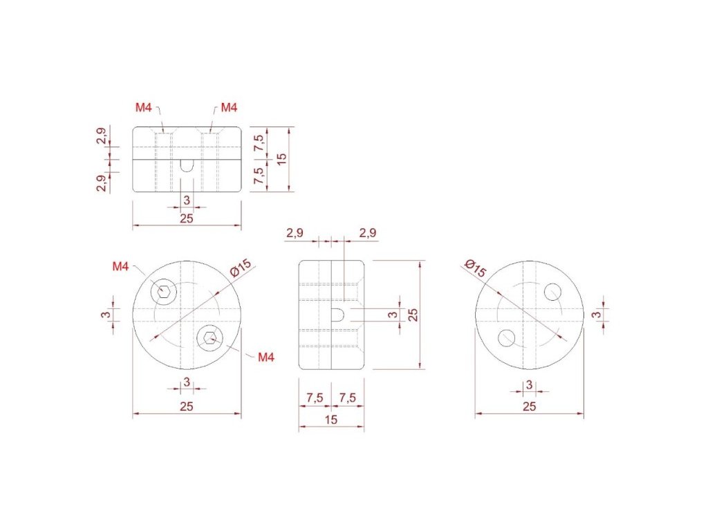 Plastová spojka pro 2 nerezová lana o průměru 3 mm
