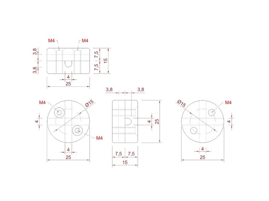 Plastová spojka pro spojení dvou nerezových kabelů o průměru 4 mm.
