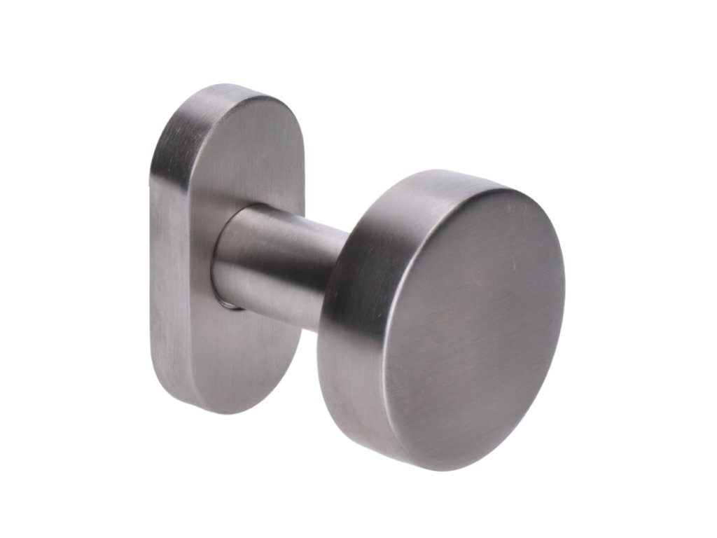 Plochá koule na rukojeť z broušené nerezové oceli, rovná, nerotující, s oválnou rozetou, 1 kus
