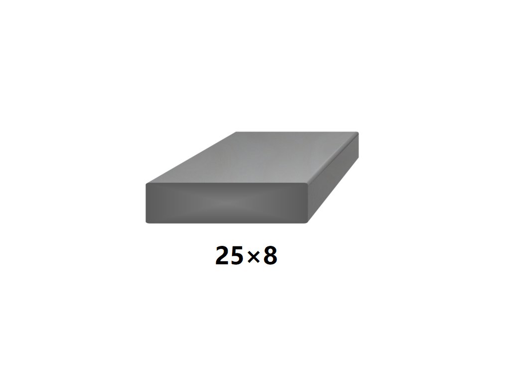 Plochá plná ocelová tyč o šířce 25 mm a tloušťce stěny 8 mm.
