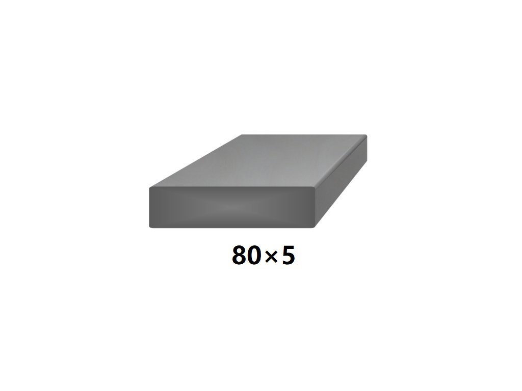 Plochá plná ocelová tyč o šířce 80 mm a tloušťce stěny 5 mm.