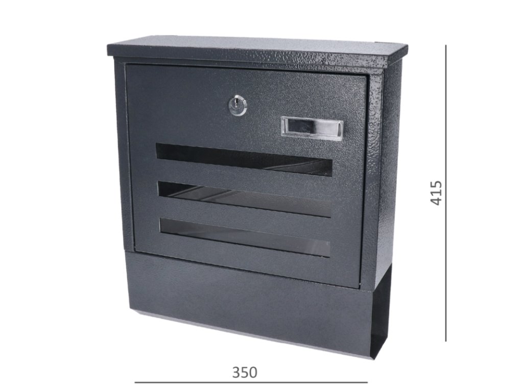 Pozinkovaná poštovní schránka o rozměrech 350x415x125 mm, lakovaná v antracitové barvě.