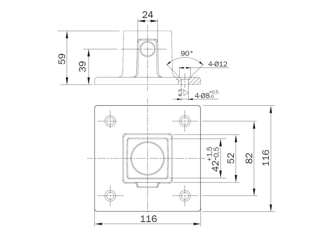 Pozinkovaná čtvercová kotva do zdi se upevňuje do zdi pomocí 4 otvorů o průměru 8 mm. Tato kotva nebo patka se používá na konstrukcích, kde je vyžadováno polohové upevnění ke stěně. Nepoužívejte jako základní kotvu pro podepření zábradlí nebo podobných systémů.
