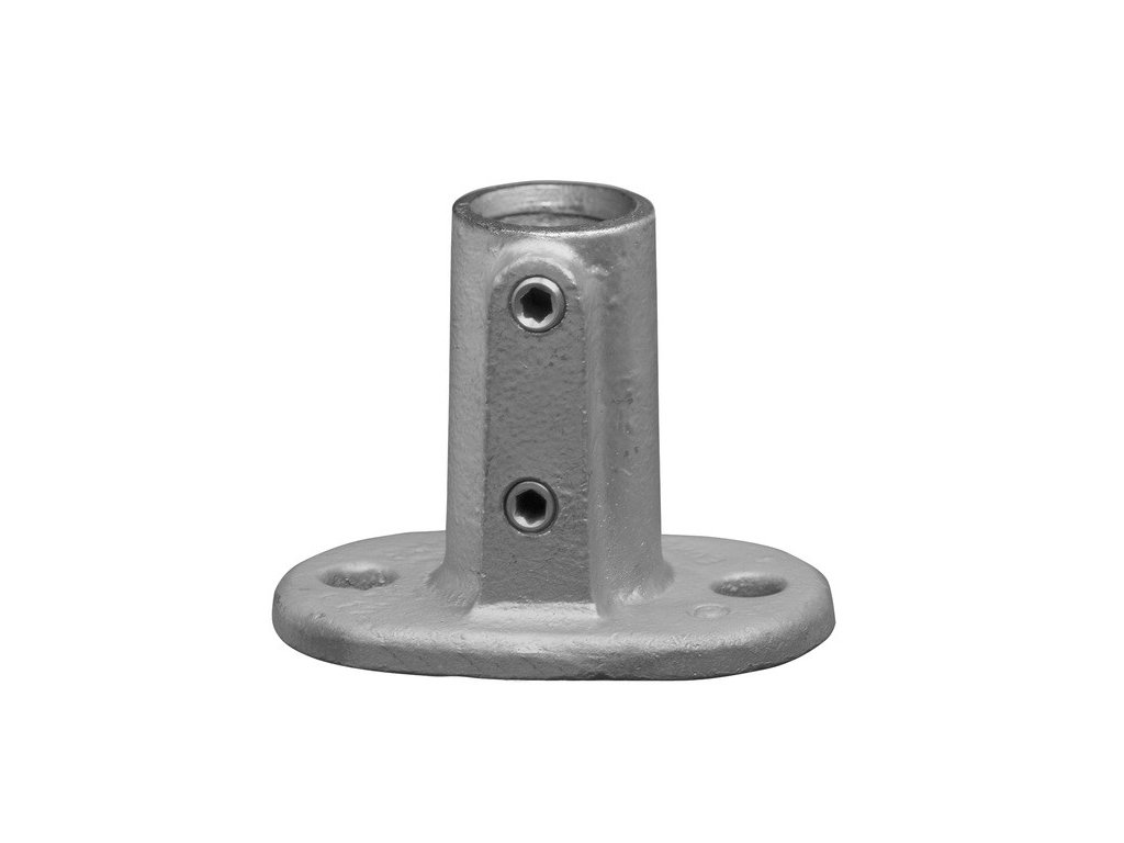 Pozinkovaná zemní kotva pro potrubí, určená k podepření svislých trubek a ukotvení konstrukce. Kotva může být použita například jako základní příruba zábradlí.