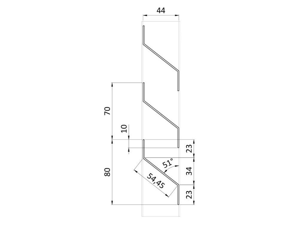 Z-profil (lamela) délka 2 m, 23x54x23x1,5mm, pozinkovaný plech, používá se jako výplň bran nebo plotů.