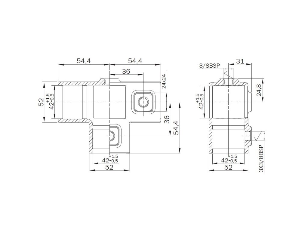 Pro spojení tří jeklů s vodorovným jeklem 40x40 mm.