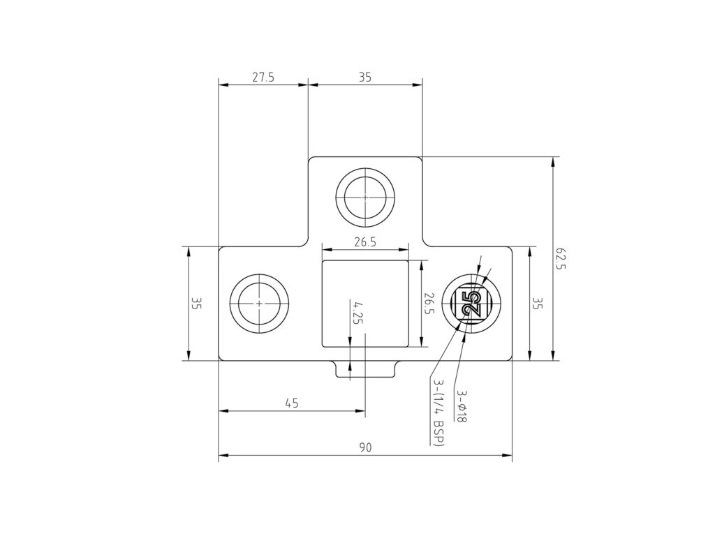 Pro spojení tří jeklů s vodorovným jeklem 25x25 mm.