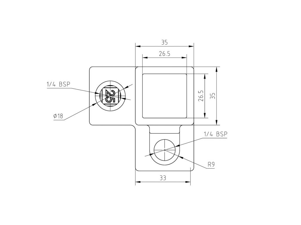 Pozinkovaná jeklová spojka 25x25 mm ve tvaru trojcestního trojúhelníku je rohová spojka s úhlem 90°. Možné použití je pro rohy horních částí konstrukcí zábradlí nebo pro jakýkoli obdélníkový spoj.