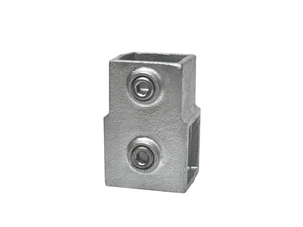 Pozinkovaná úzká spojka ve tvaru T o rozměrech 40x40 mm vytváří kolmý spoj mezi dvěma jokly. Vhodné pro horní rovné části konstrukcí nebo jako vodorovné podpěry zábradlí. Tyto spojky jeklu nelze použít pro horizontální spoje jeklů.