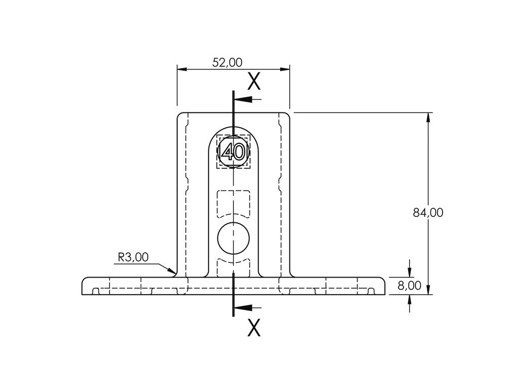 Svislá stěna kotvy je v klíčových bodech Allenova klíče širší, což zajišťuje zpevnění spoje a ukotvení konstrukce. Upevnění v základní vodorovné přírubě by mělo odpovídat působícímu zatížení. Kotva se upevňuje do země pomocí 2 otvorů.