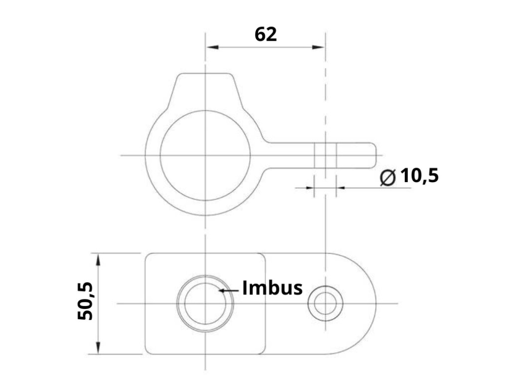 Pozinkovaný držák pole pro trubky o průměru 60,3 mm, s typem umístění imbusového šroubu z přední strany. Vhodné pro upevnění panelů, desek nebo pletiva na trubkový rám. Lze jej například použít při výrobě rámu pro reklamní poutač.