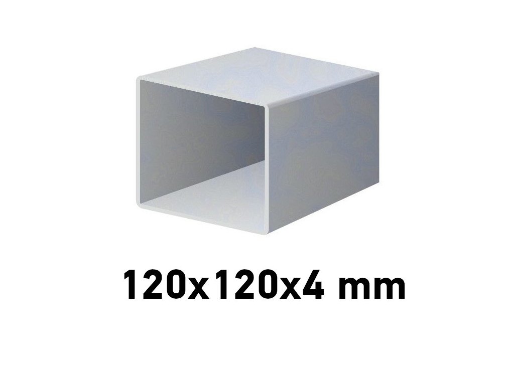 Uzavřený jäklový profil o rozměrech 120x120 mm a tloušťce 4 mm. S pozinkovaným povrchem, hladké.