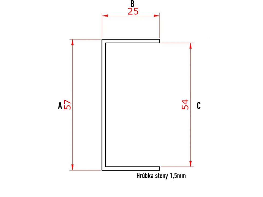 U-profil 25x57x25x1,5mm, pozinkovaný, .