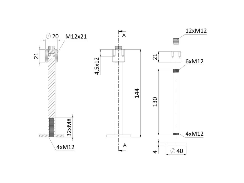 Příruba se závitem M8 pro upevnění dvou nerezových lan o průměru 4 mm.