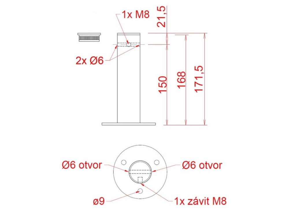 Příruba pro fasádní lankovou stěnu, závit M8, odsazení od stěny 150mm