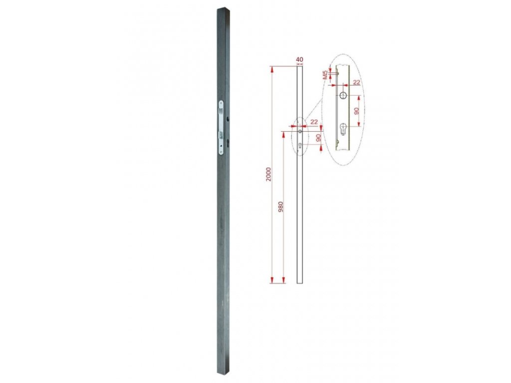 Profil Jokl se zabudovaným zámkem vhodný jako brankový rám. Velikost profilu je 40x40x1,5 mm a výška 2 m. Bez povrchové úpravy.