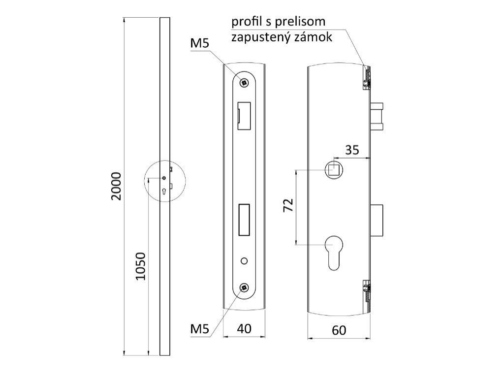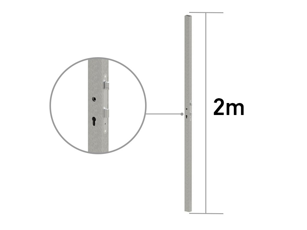 Pozinkovaný ocelový profil se zabudovaným zámkem vhodný jako brankový rám.