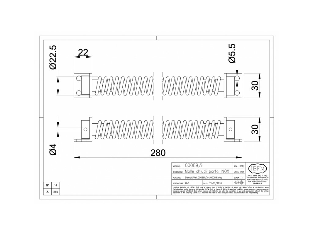 Pružinový zavírač dveří z nerezové oceli vhodný pro dveře do 60 kg.