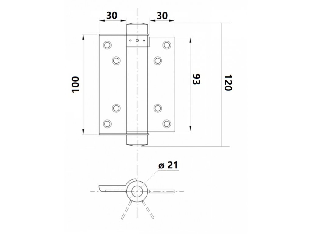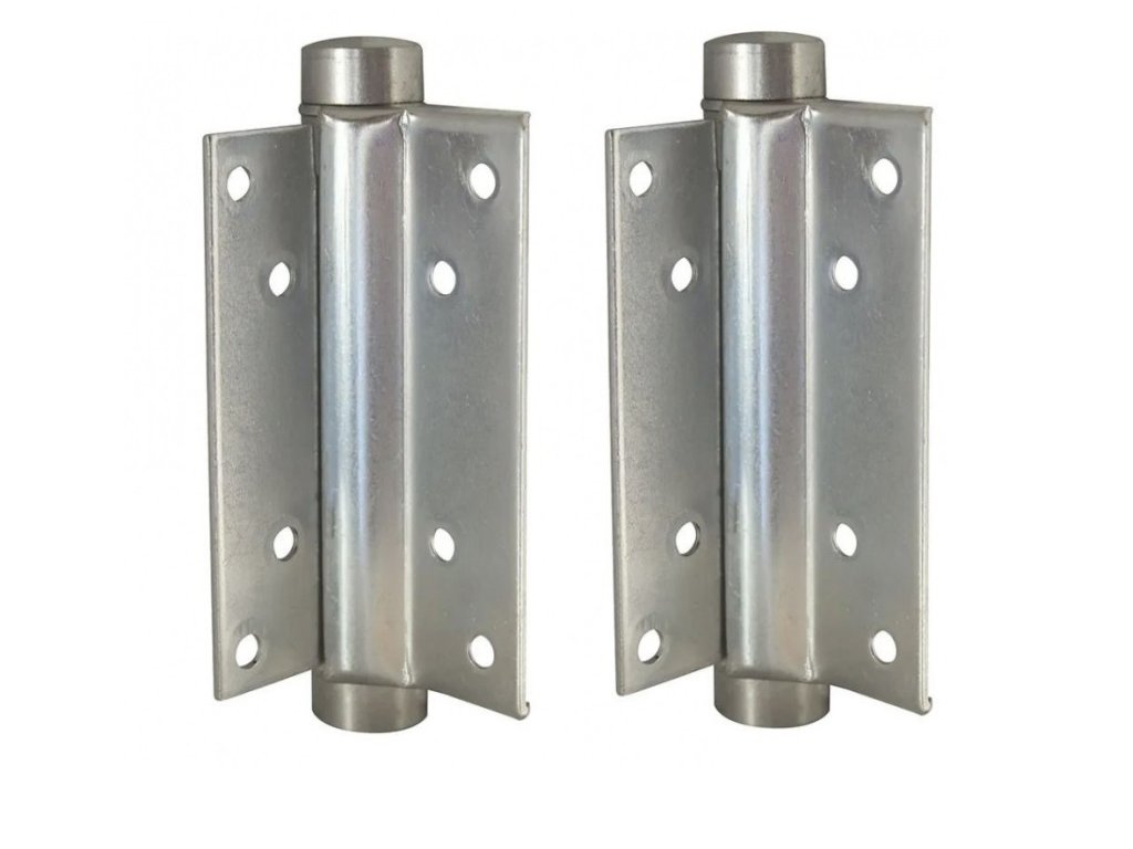 Jednostranný pružinový závěs vhodný pro vrata nebo dveře, které se při otevření samy zavírají. Závěsy jsou vyrobeny z leštěné oceli bez povrchové úpravy.