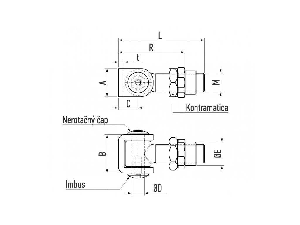 Nastavitelný svařovací závěs s objímkou. Hlava a objímka jsou vyrobeny ze surového železa, tělo je pozinkované. Rozměry M16, M18, M20, M24.