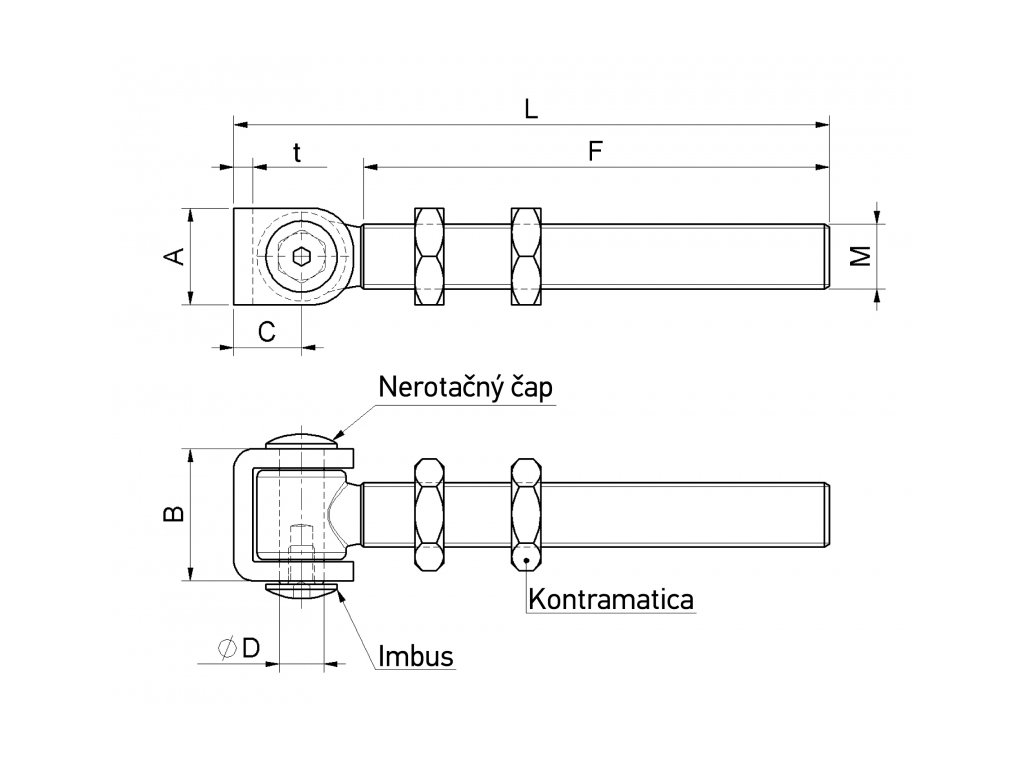 Univerzální závěs pro dveře a vrata s prodlouženým závitem (144 mm). Vhodné pro chemické kotvení nebo pokud chcete závěs ukotvit přes sloupek.