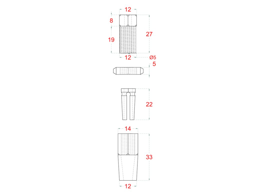 Rukojeť z nerezového lana o průměru 4 mm. Rukojeť obsahuje závit M6.