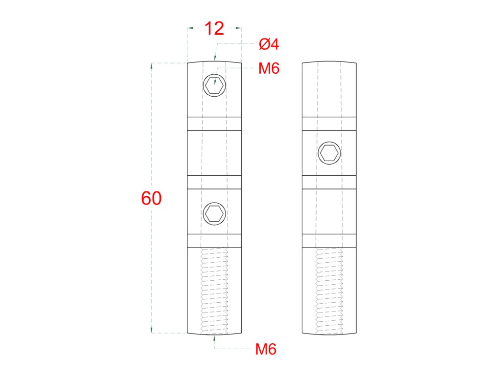 Rukojeť pro nerezový drát ø4mm, závit M6, broušená nerezová ocel K320/ AISI304