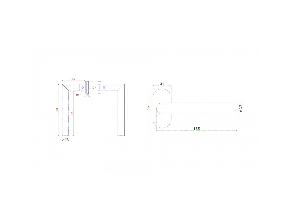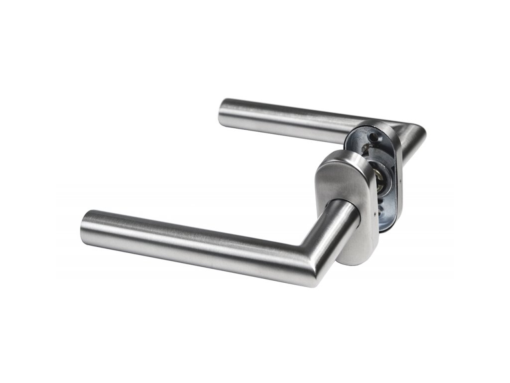 Nerezová ocel AISI304. Broušení K320. Rovná ostrá klika. Oválná rozeta.