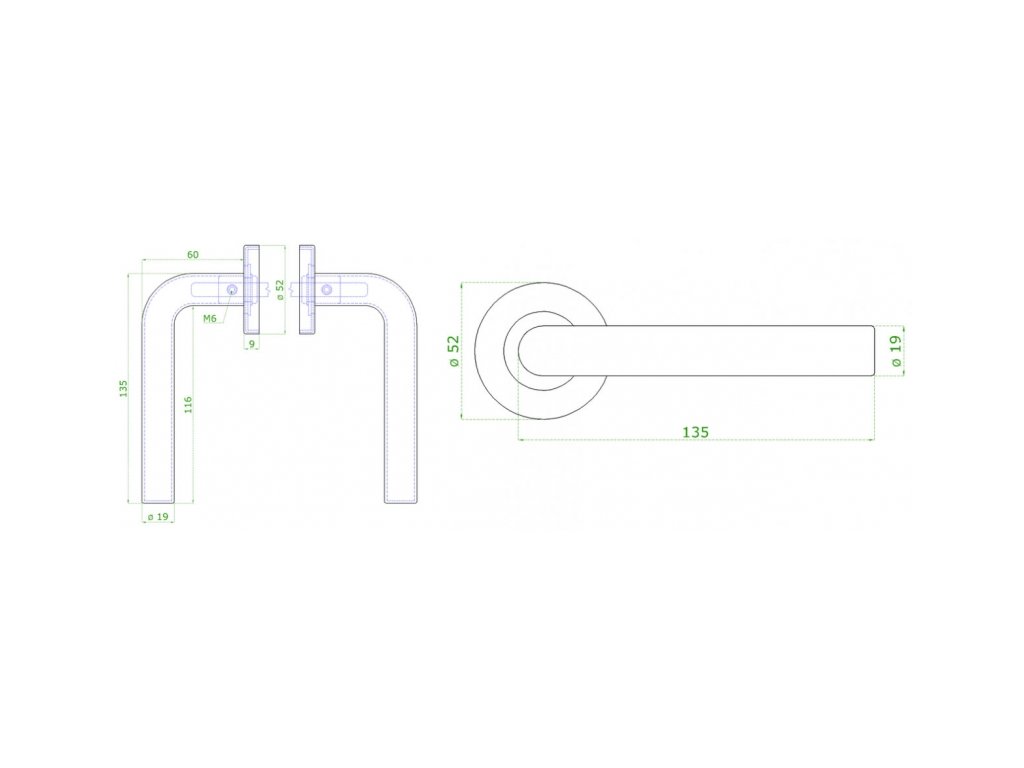 Nerezová ocel AISI304. Broušení K320. Rovná kulatá klika. Kulatá růžice.
