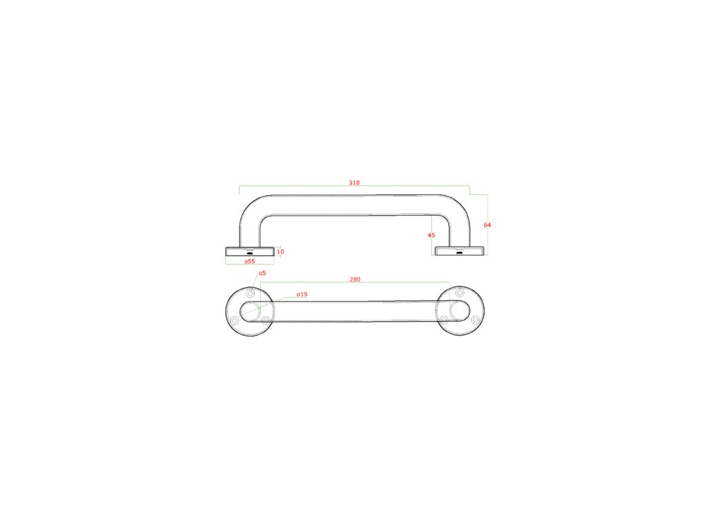 Nerezové madlo pro posuvnou bránu, křídlovou bránu nebo dveře. 318x64 mm / ø 19 mm.