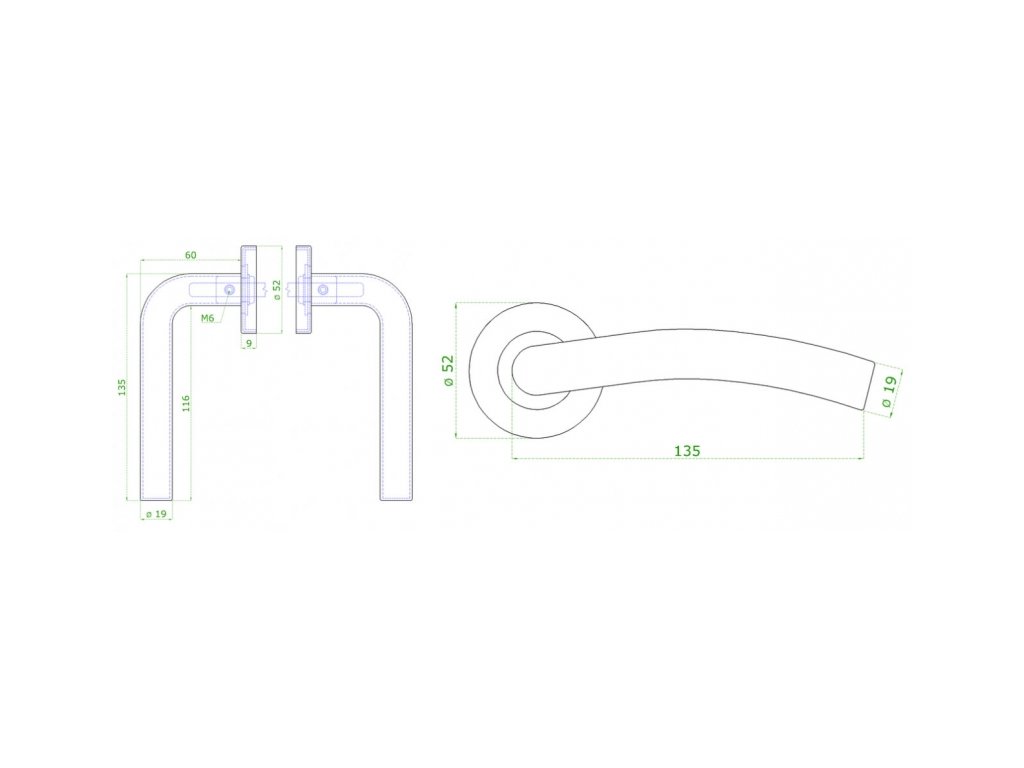 Nerezová ocel AISI304. Broušení K320. Zakroucená klika. Kulatá růžice.