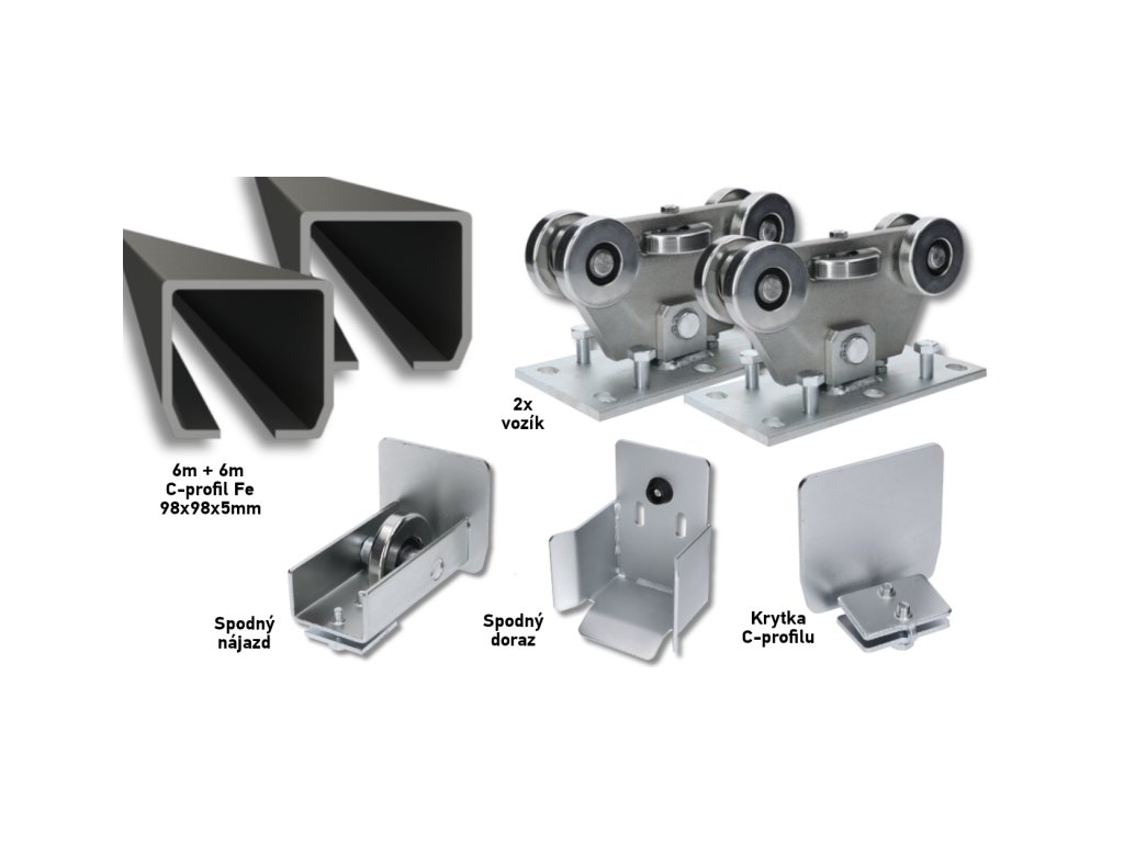 Kompletní SADA pro výrobu samonosné posuvné brány do šířky průjezdu 8,5 m a do celkové hmotnosti samonosné brány 450 kg. Kompletní sada s 12metrovým C-profilem je za zvýhodněnou cenu. Na vyžádání můžeme dodat C-profil řezaný na celé metry, který lze také přivařit a dosáhnout tak šířky průjezdu více než 8,5 m.