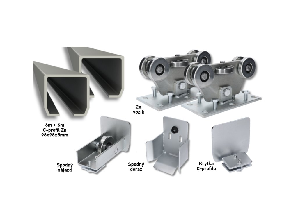 Sada komponentů pro výrobu samonosné brány nejvyšší kvality s vysoce spolehlivými ložisky. Celá sada, včetně dvou C-profilů, je povrchově upravena - žárově pozinkována.