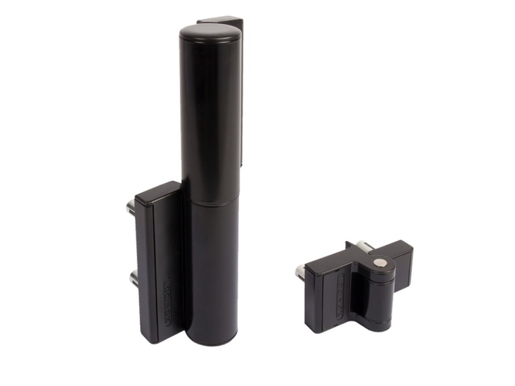 Sada hydraulického zavírače Locinox TIGER, který slouží jako horní závěs a spodní závěs pro bránu nebo vrata do 75 kg.