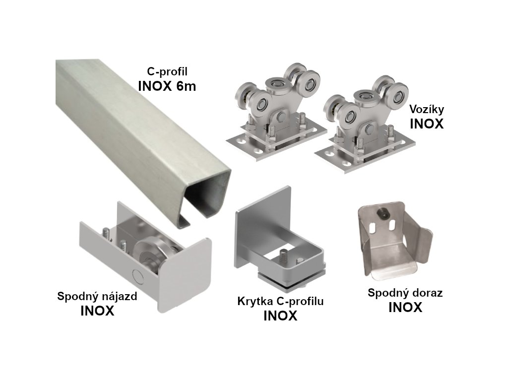 vozíky s 5 ložisky, nájezdem, dorazem, uzávěrem - nerezová ocel