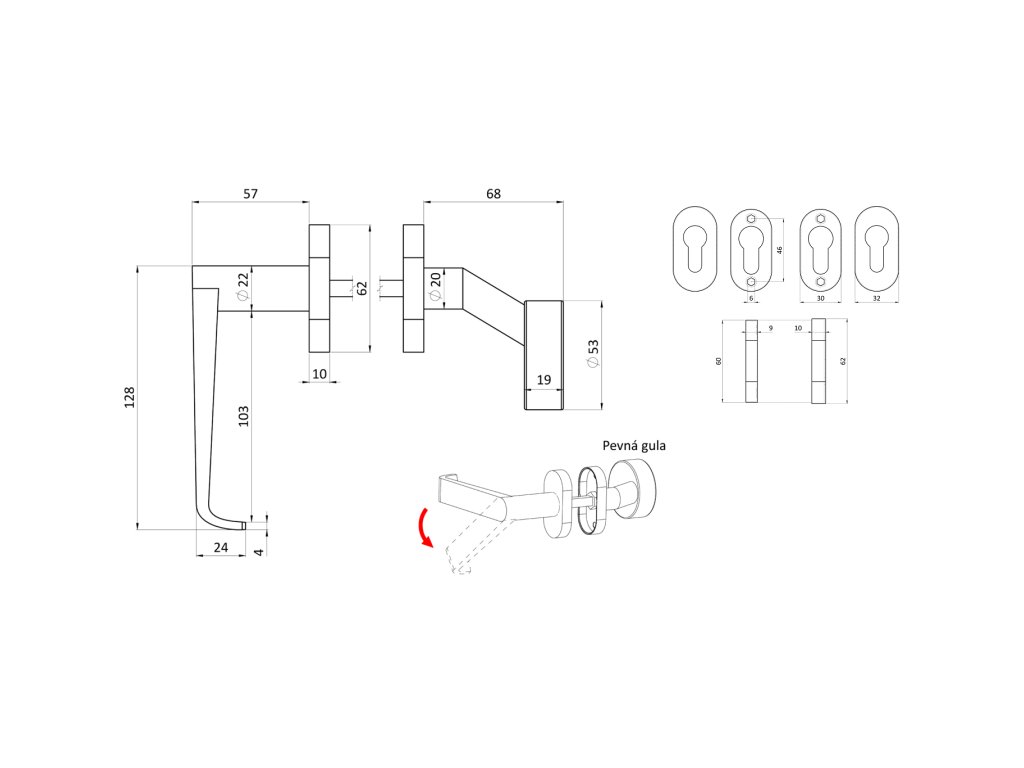 Levá rukojeť s neotočnou (pevnou) koulí z nerezové oceli.