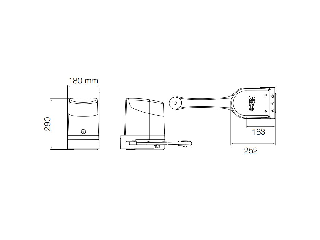 Rozměr pohonu NICE Hopp HO7124/HO7224: