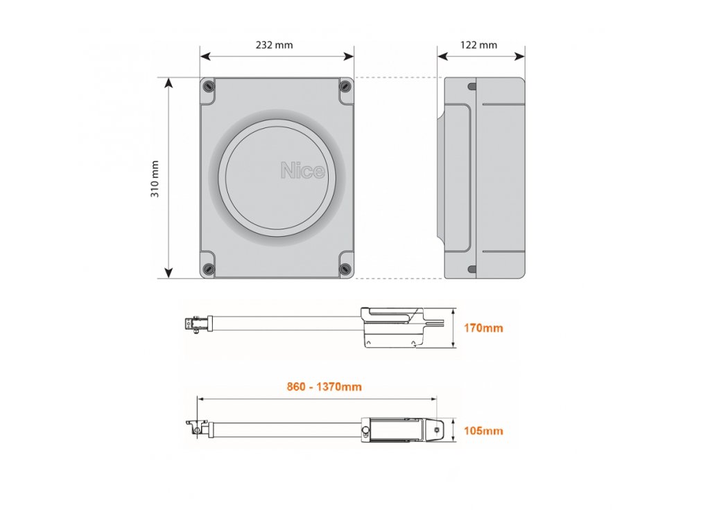 Sada pohonu NICE TITAN 3724HS pro jednokřídlou bránu do 3,7 m/450 kg, s příslušenstvím